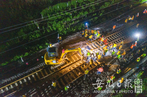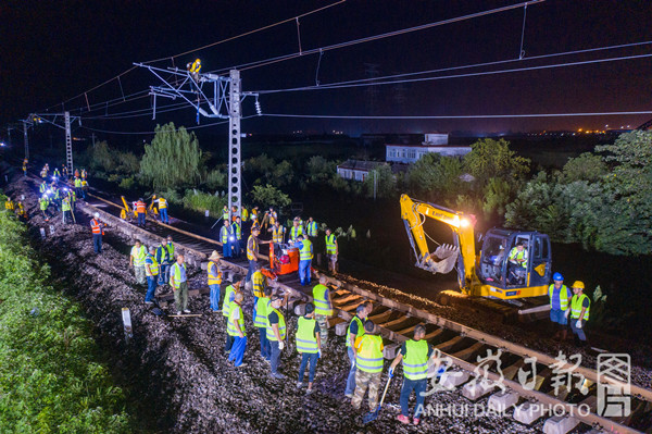 7月29日晚10:20分,寧西鐵路安徽段200余名工作人員隨著施工命令的下達,寧西上行線線路回撥施工正式開始,鋸軌、扒砟、穿滑軌撥移、起道搗固等一系列工序緊張有序展開。