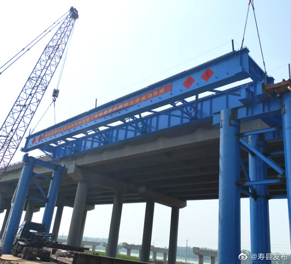 引江濟(jì)淮工程S12淮河大橋首片鋼梁架設(shè)完成