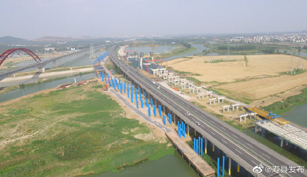 引江濟(jì)淮工程S12高速淮河大橋四號橋改建工程位于壽縣境內(nèi),交叉處合淮阜高速公路淮河4號橋?yàn)榛春犹卮髽虻囊徊糠郑昂蠊?4.176公里橋梁,現(xiàn)狀跨引江濟(jì)淮河道為(55+100+65)米變截面連續(xù)梁橋,引橋采用30米先簡支后連續(xù)裝配式小箱梁。