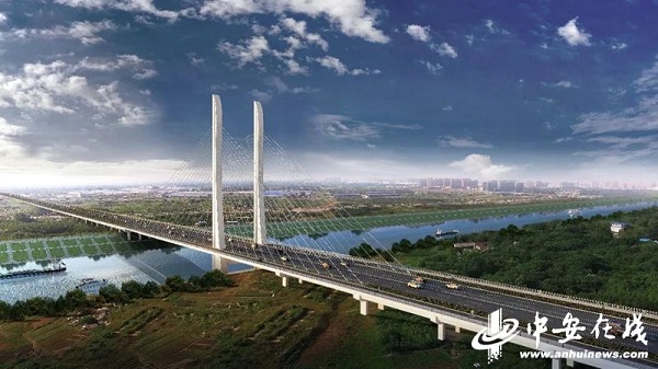 引江濟淮工程最新消息:橋的雙子塔柱已拔地而起